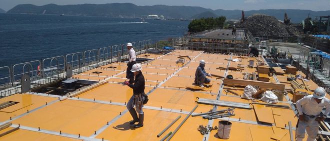 大島漁港再整備工事 床板鉄筋組立 2021/05/29 カテゴリー : 現場から 二江漁港漁村再生(浮桟橋・連絡橋)製作工事 型枠組立 2021/05/29 カテゴリー : 現場から 音戸漁港港整備工事 音戸漁港側壁床板打設後養生 2021/05/29 2021/05/29 カテゴリー : 現場から 1 / 11